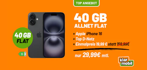 - Apple iPhone 16 mit Klarmobil Allnet-Flat bei Klarmobil.de