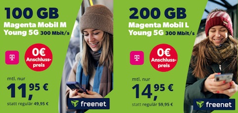 - Magenta Mobil Young M Allnet-Flat mit 100GB für 11,95€/Monat bei Freenet